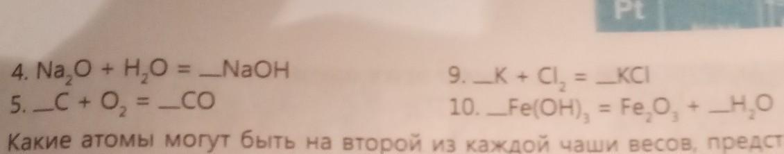 Уравняйте следующие реакции, расставив коэффициенты над линиями, и укажите их тип
