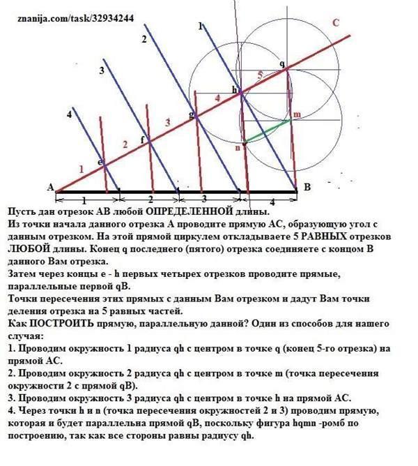 Деление данного отрезка — по теореме Фалеса.