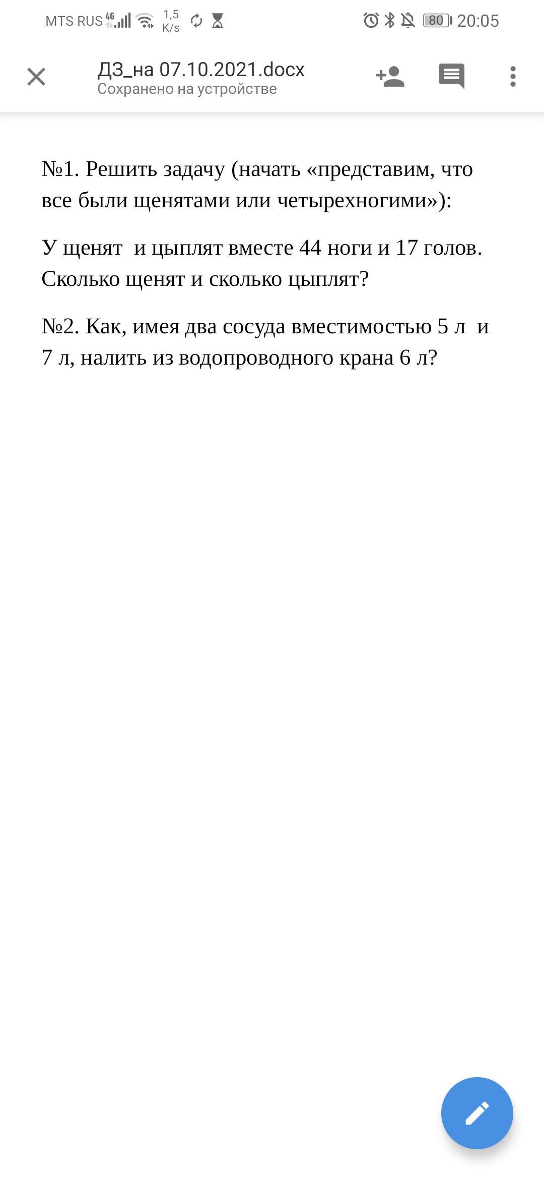 Отлить в 5-литровый 1 литр и в нем останется 6 литров воды