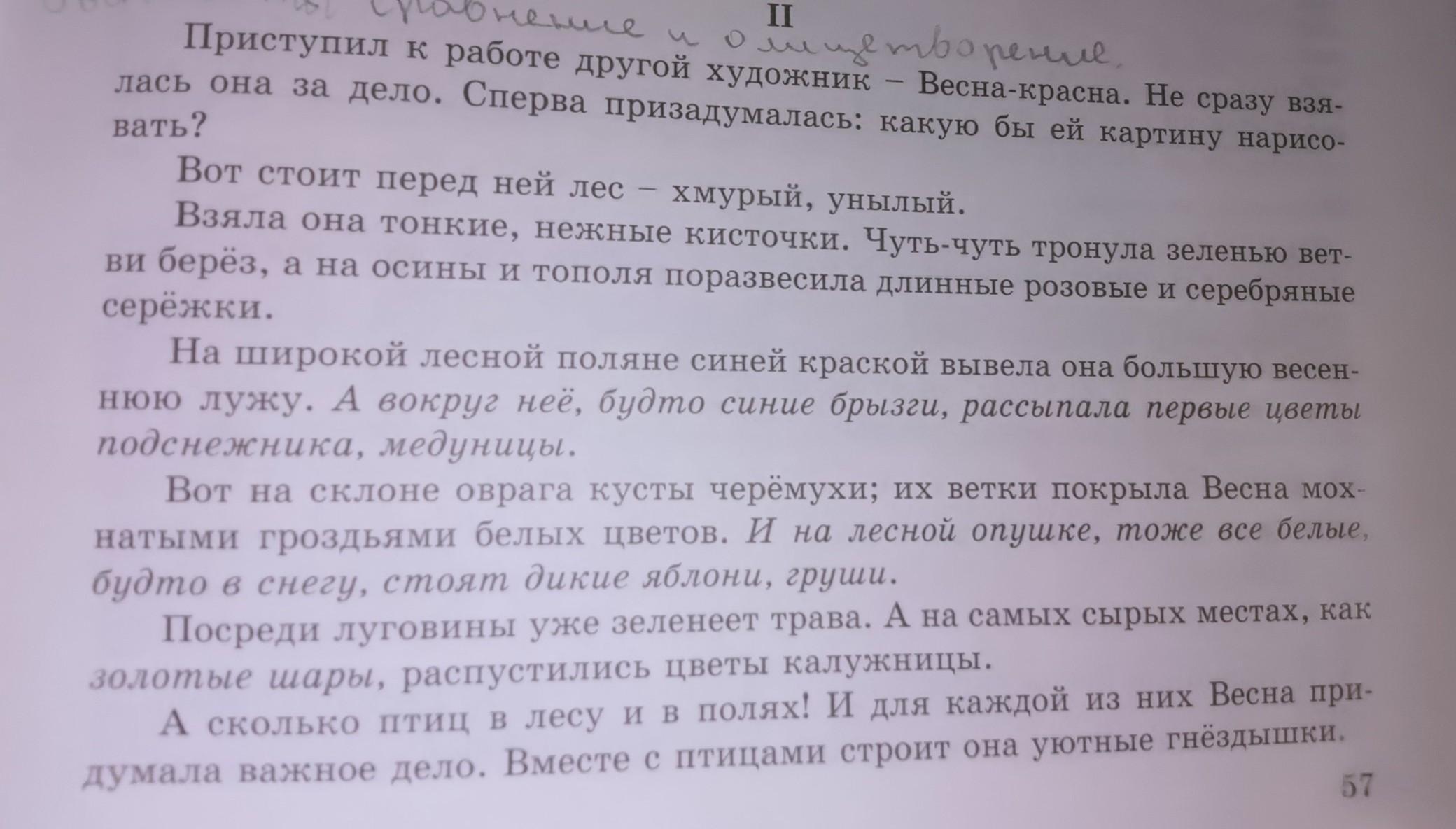 олицетворение: лес - хмурый, унылый; дикие яблони, груши.