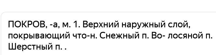 Покров - это поверхность тела. Например у человека кожный покров (кожа)