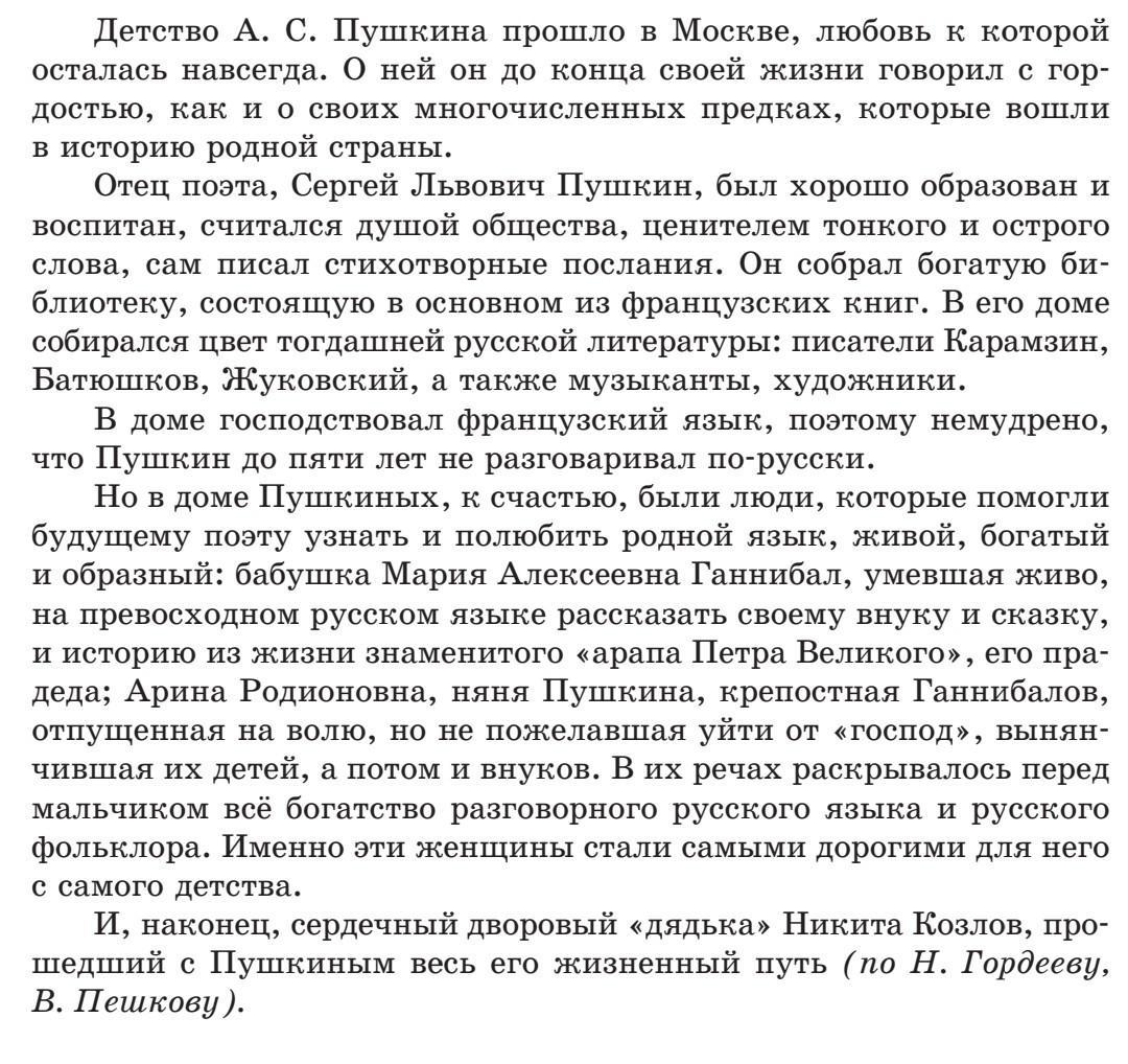 уважаемым человеком, и был ценителем литературы. И вообще был ценителем искусства. С самого рождения в его доме все вели разговоры на французском языке, но его бабушка и няня научили его родному языку, который он полюбил так же, как свою Родину. Так и получилось, что в его жизни они стали самыми дорогими в его жизни. И конечно же был сердечный Никиты Козлов, который прошёл с Пушкиным весь его путь...