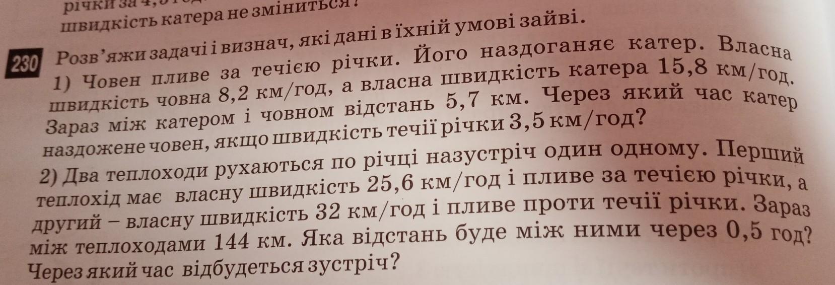 2) 28 - 1.8 = 26,2 (км/год) - швидкість катера проти течії річки.