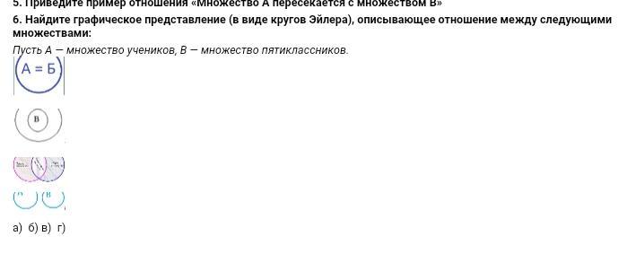 6) Имеется множество всех учеников, следовательно множество пятиклассников полностью входят в множество всех, но меньше его, так как есть другие ученики.