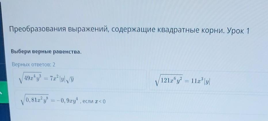 верные ответы первый и последний. поскольку х - отрицательно, то корень квадратный из его четной степени равен модулю, а модуль х при х - отрицательном равен -х, это что касаемо последнего, по этой же причине второй не верный.