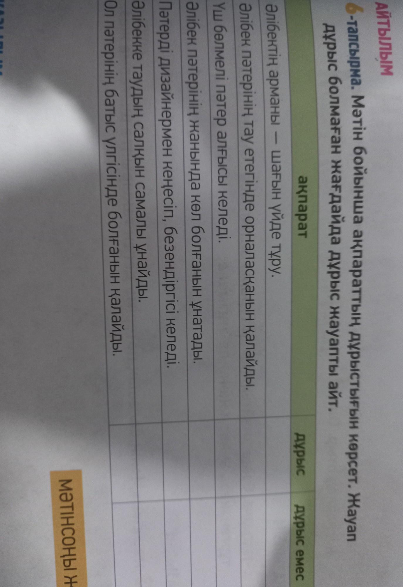 Мәтін бойынша ақпараттың дұрыстығын көрсет.