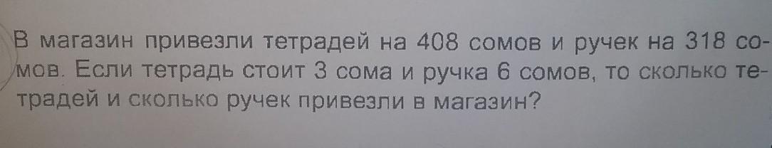 1) 408:3=136(шт.)- привезли в магазин тетрадей