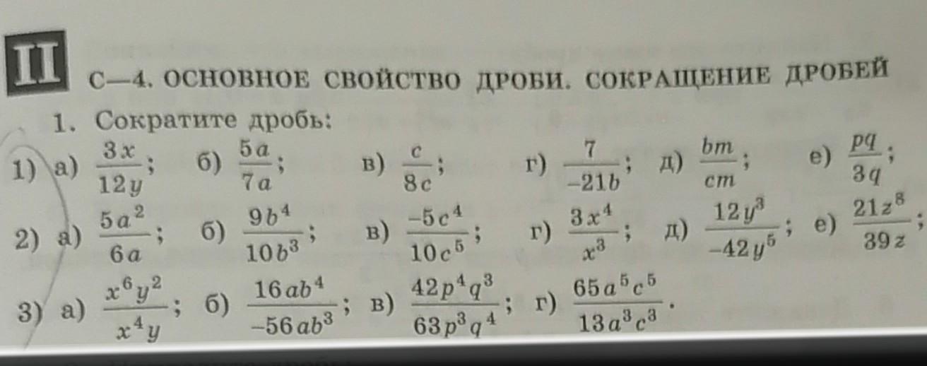 1. а) 1x дробная черта 4y.