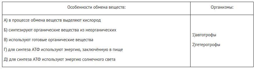9. Установите соответствие между организмами и особенностями обмена веществ, характерными для них