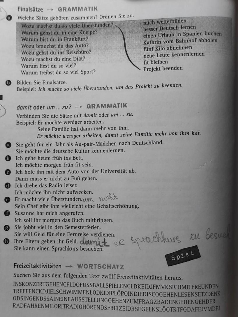 h) ..., damit sie einen Sprachkurs besuchen kann.