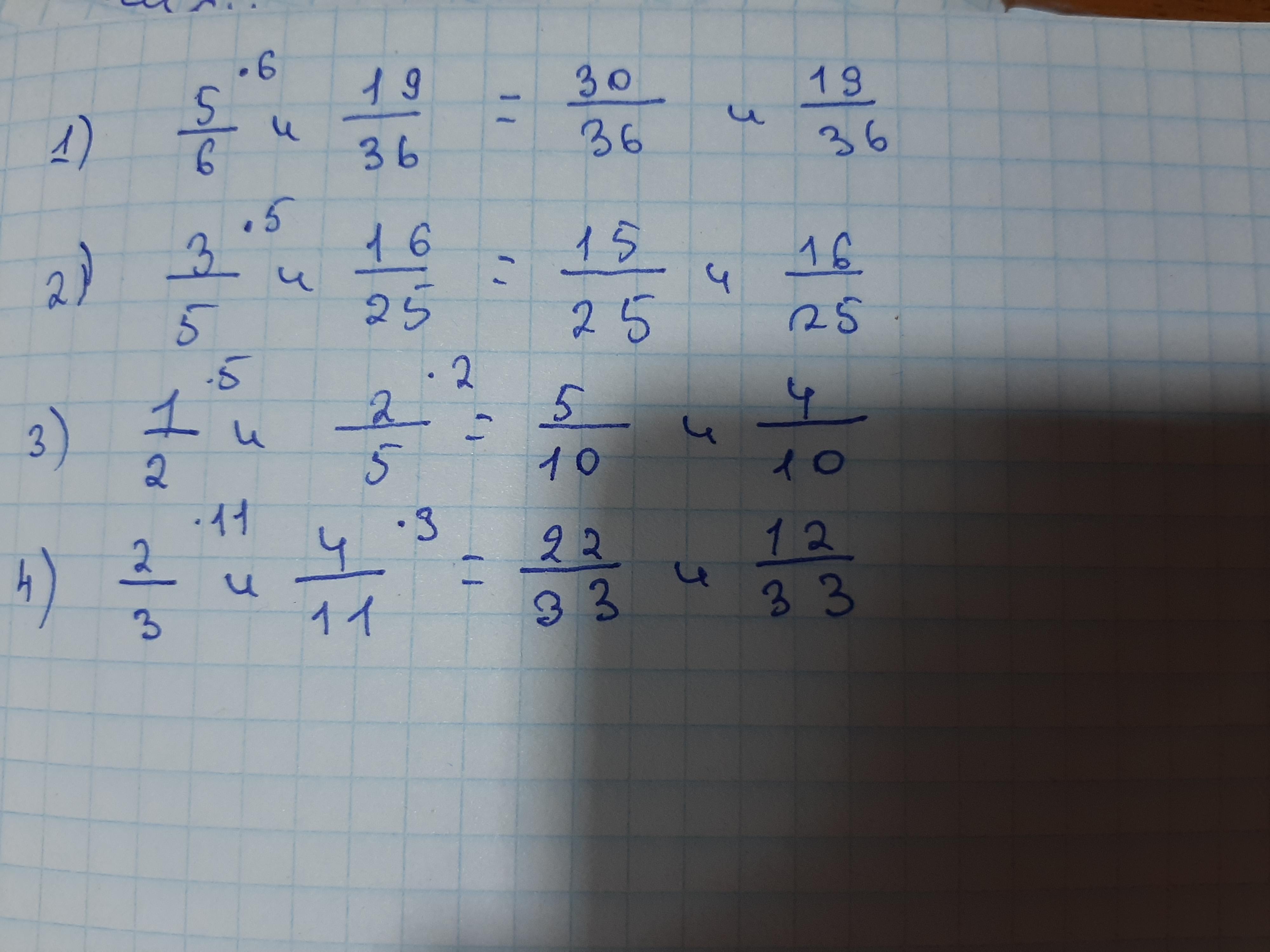 Сделала только 4 остальное сам хорошенько подумай нужно на какое то число умножить чтобы их знаменатели были одинаковыми