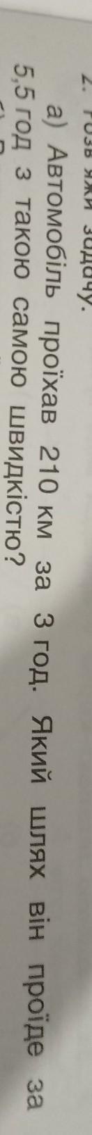 а) Автомобіль проїхав 210 км за 3 год Який шлях він проїде за 55 год з такою самою швидкістю?
