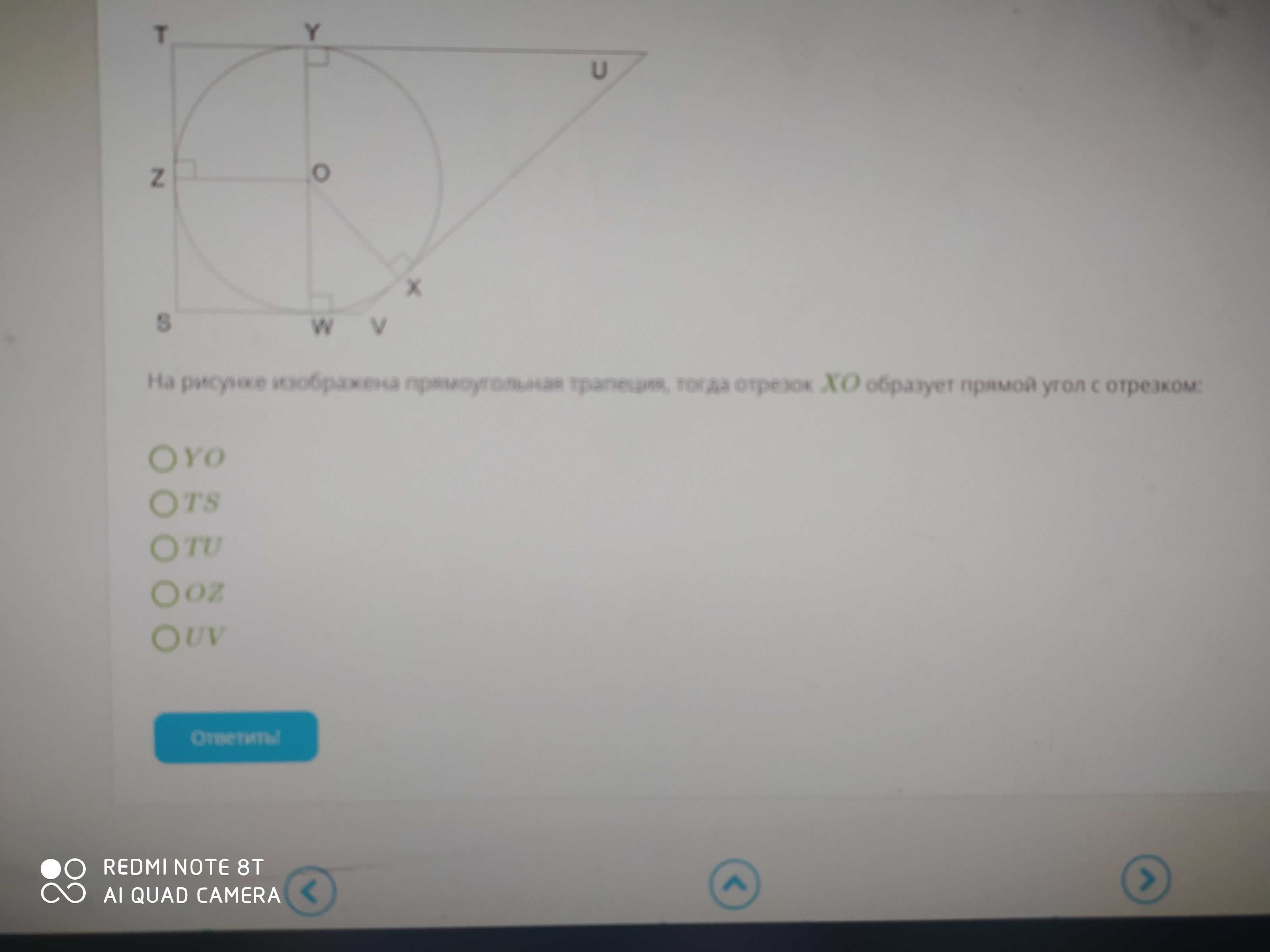 На рисунке изображена прямоугольная трапеция, тогда отрезок XO образует прямой угол с отрезком