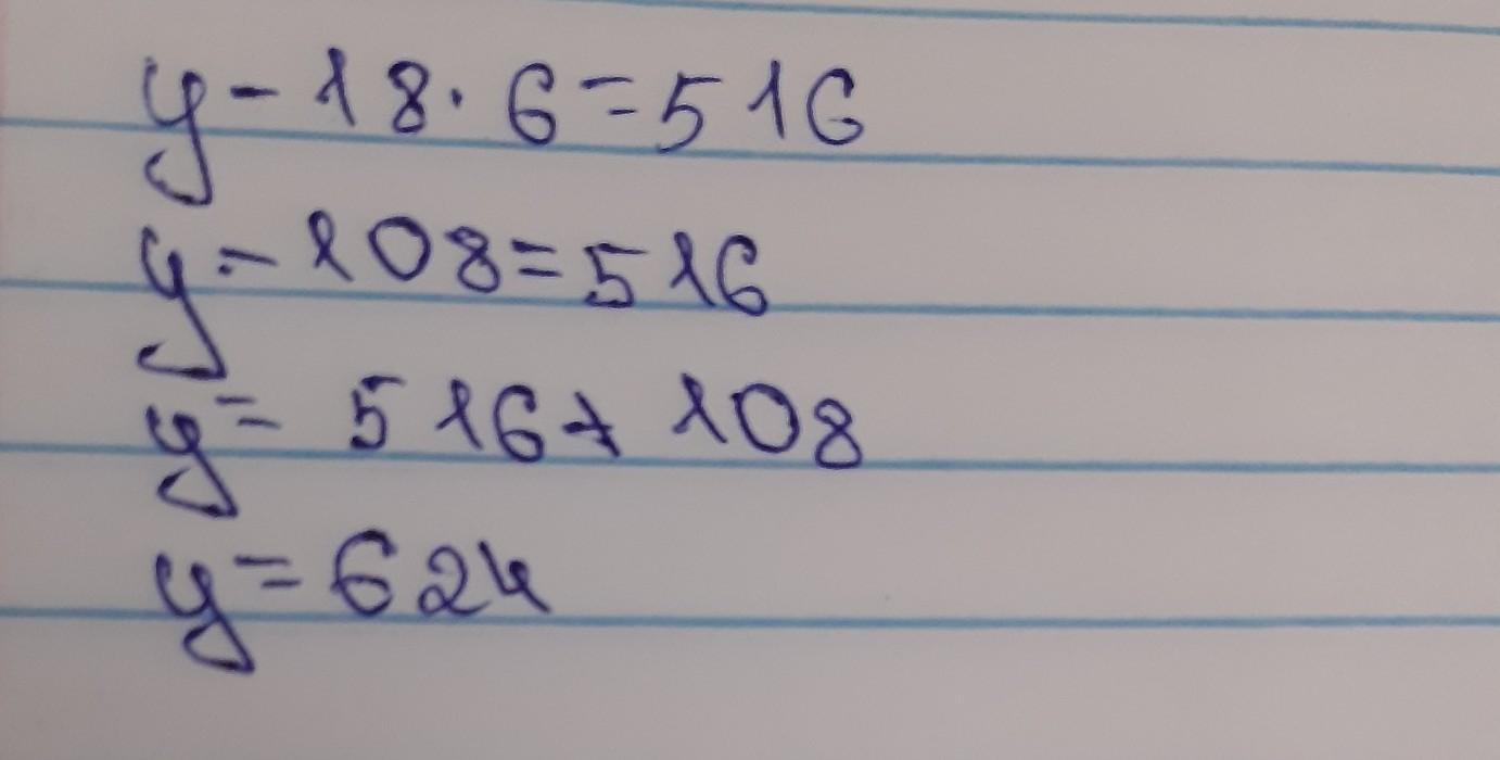 у-18*6=516; у-108=516; у=516+108; у=624.