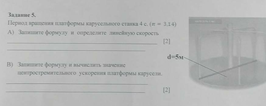 В) Запишите формулу и вычислите значение центростремительного ускорения платформы карусели.