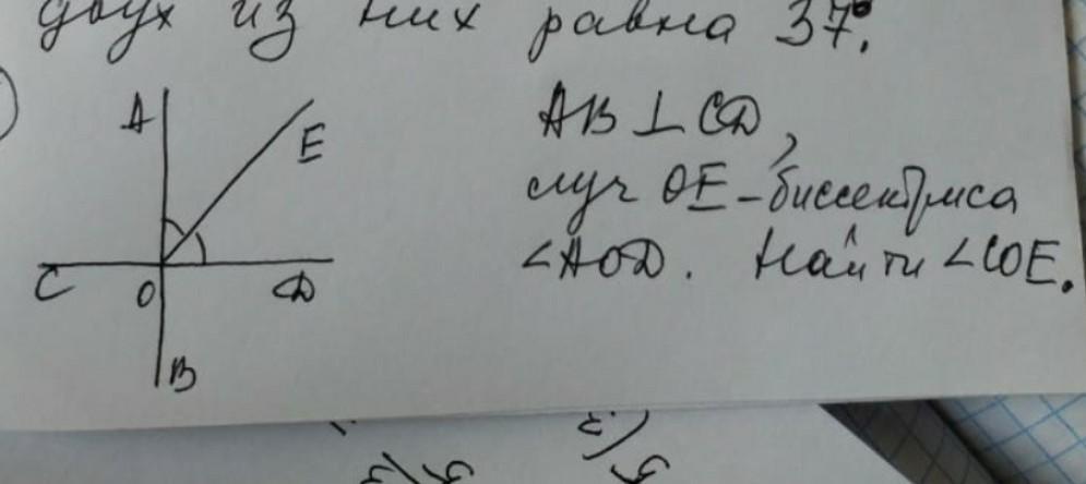 АОЕ=ЕОD=1/2*AOD=1/2*90°=45°