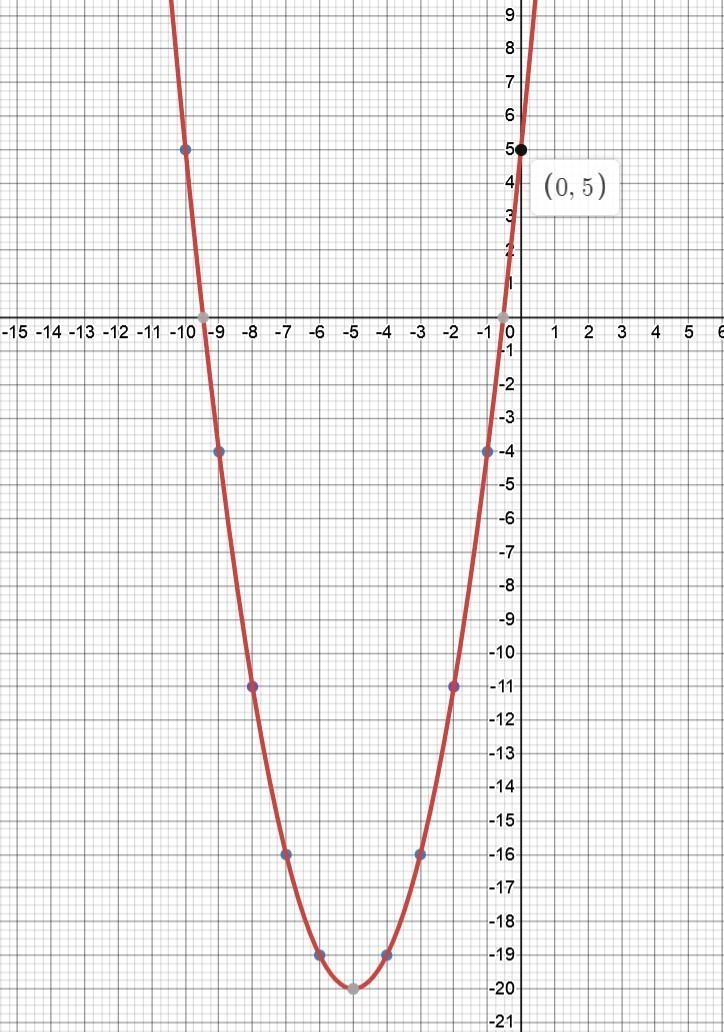 Рисуем обычную параболу, сдвинутую на 5 клеток влево по оси X и на 20 клеток вниз по оси Y.