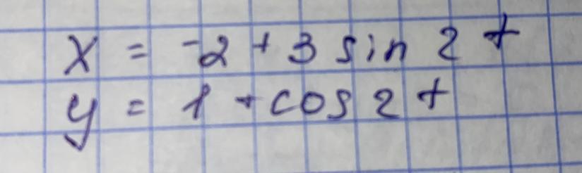 Исключить параметр t можно выразив значения синуса и косинуса соответственно через х и у и используя основное тригонометрическое тождество. см фото