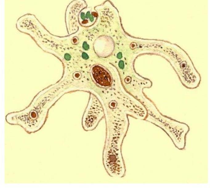 Так как у амёбы все действия совершает лишь одна клетка