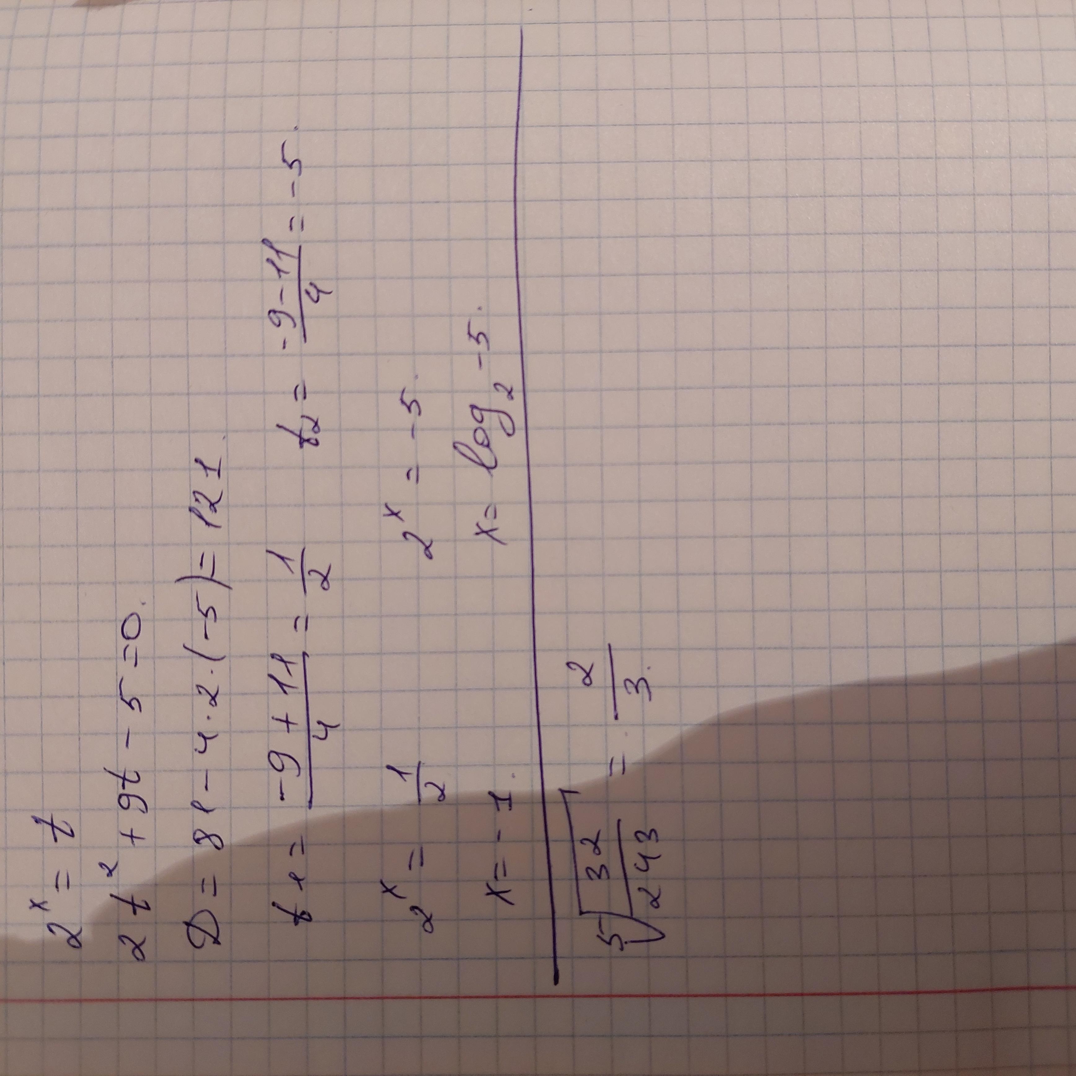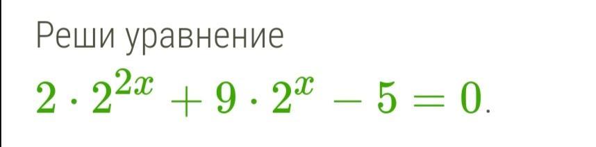 2*2^2x +9*2^x -5=0, 2^x=t, t>0, D=121 t=-14/4 <0 не подходит, t=1/2