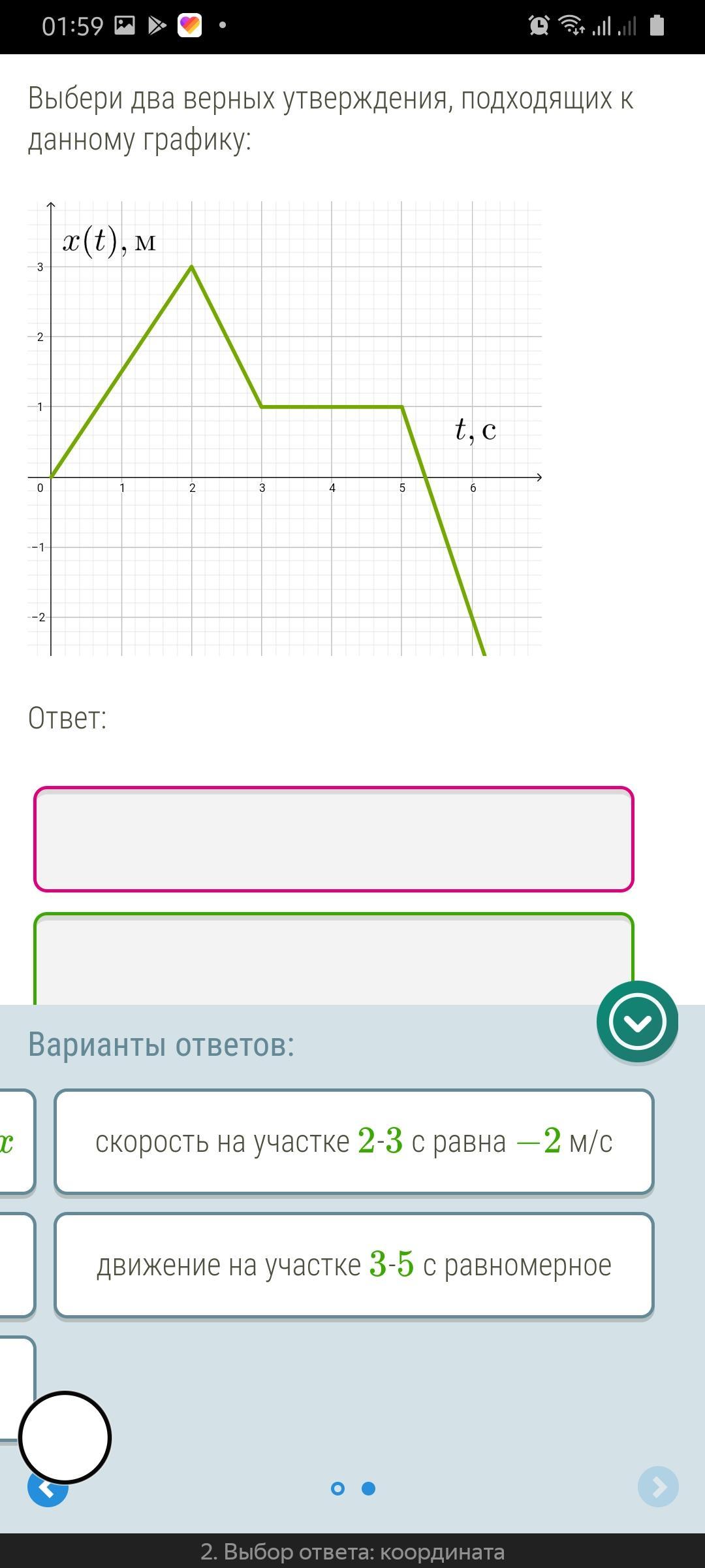 скорость на участке 2-3 с равна -2м/с