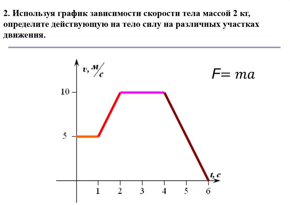 На четвёртом: F_4 = m*a_4 = 2*(-5) = -10 H - знак минуса показывает, что сила направлена против движения тела (тормозит его).