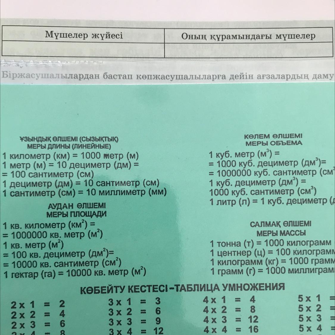 2. Қосымша материалды пайдаланып, кестені толтырыңдар: