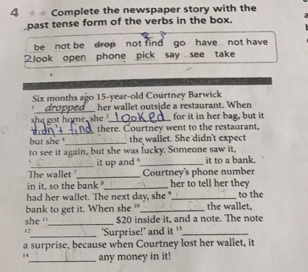 Complete the newspaper story with the past. Tense form of the verbs in the box