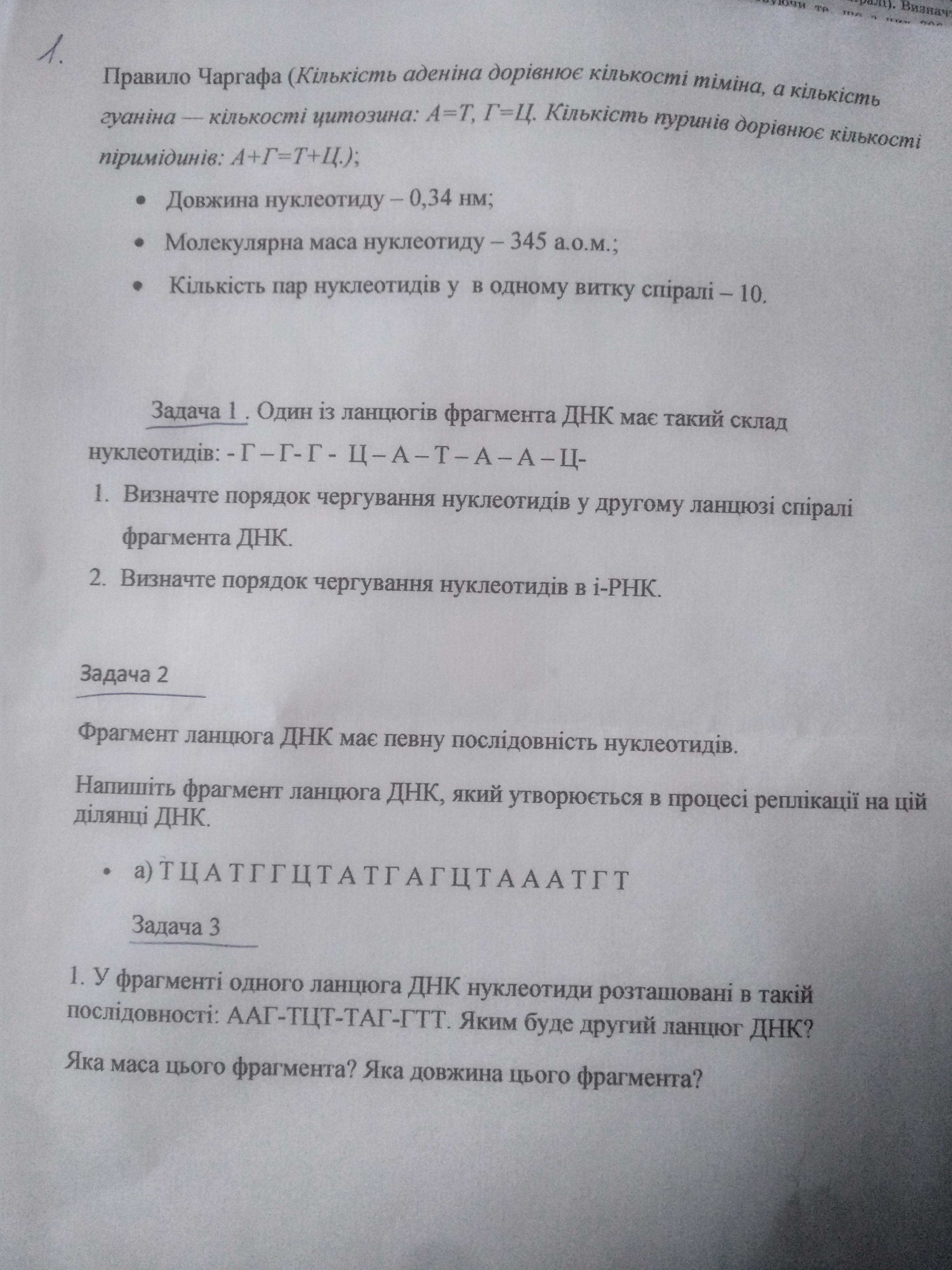 1. Чергування нуклеотидів у другому ланцюгу ДНК:
