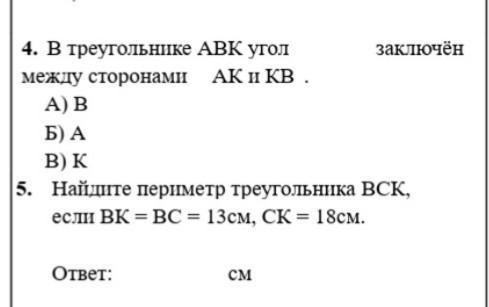 4) вариант ответа В (Правильный ответ угол К)