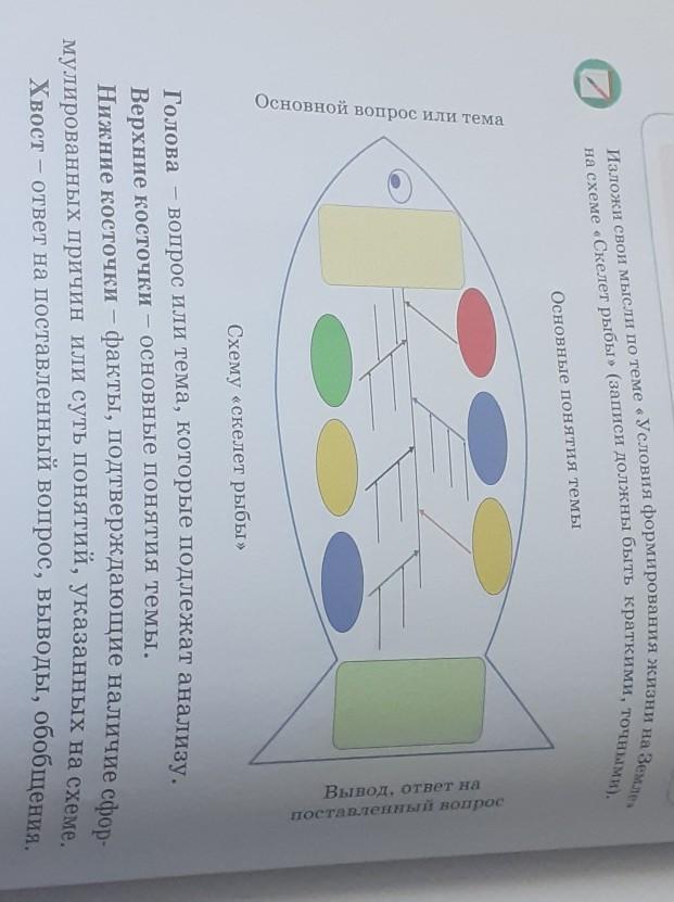 на схеме «Скелет рыбы» (записи должны быть краткими, точными).