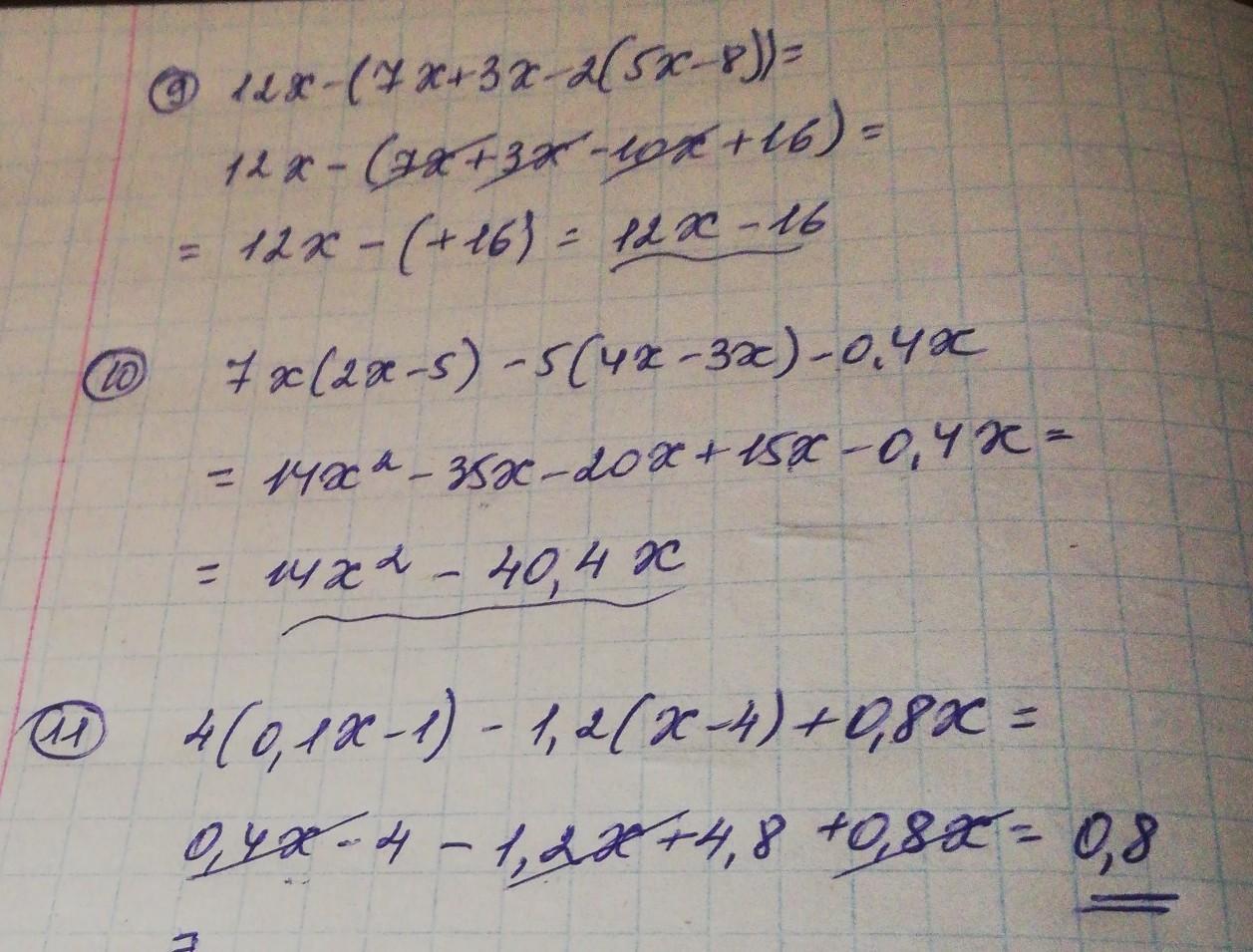 10. 7х(2х - 5) -5(4х - 3х) - 0,4х =