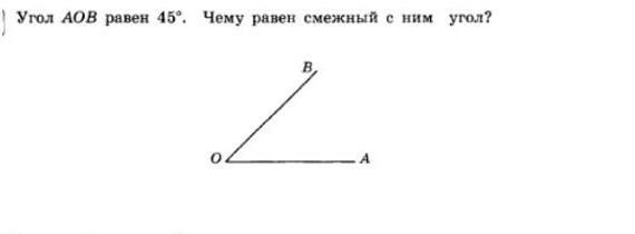 Сумма смежных углов равна 180°, поэтому чтобы найти смежный угол с ∠АОВ нужно 180°-45°=135°