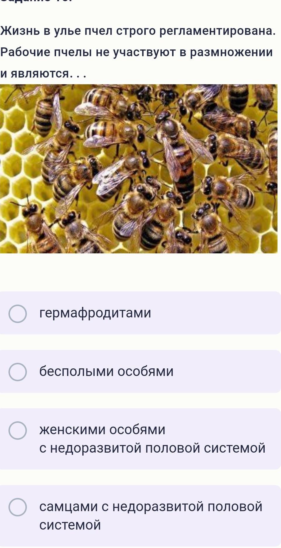 Ответ: 3)женскими особями с недоразвитой половой системой