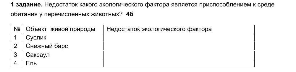 все сделала кроме Саксаул ,помогите скажите какой недостаток у них экологического фактора!!!!!!!
