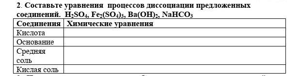 Составьте уравнения процессов диссоциации предложенных соединений. H2SO4, Fe2(SO4)3, Ba(OH)2, NaHCO3 Помогите Срочно!!!