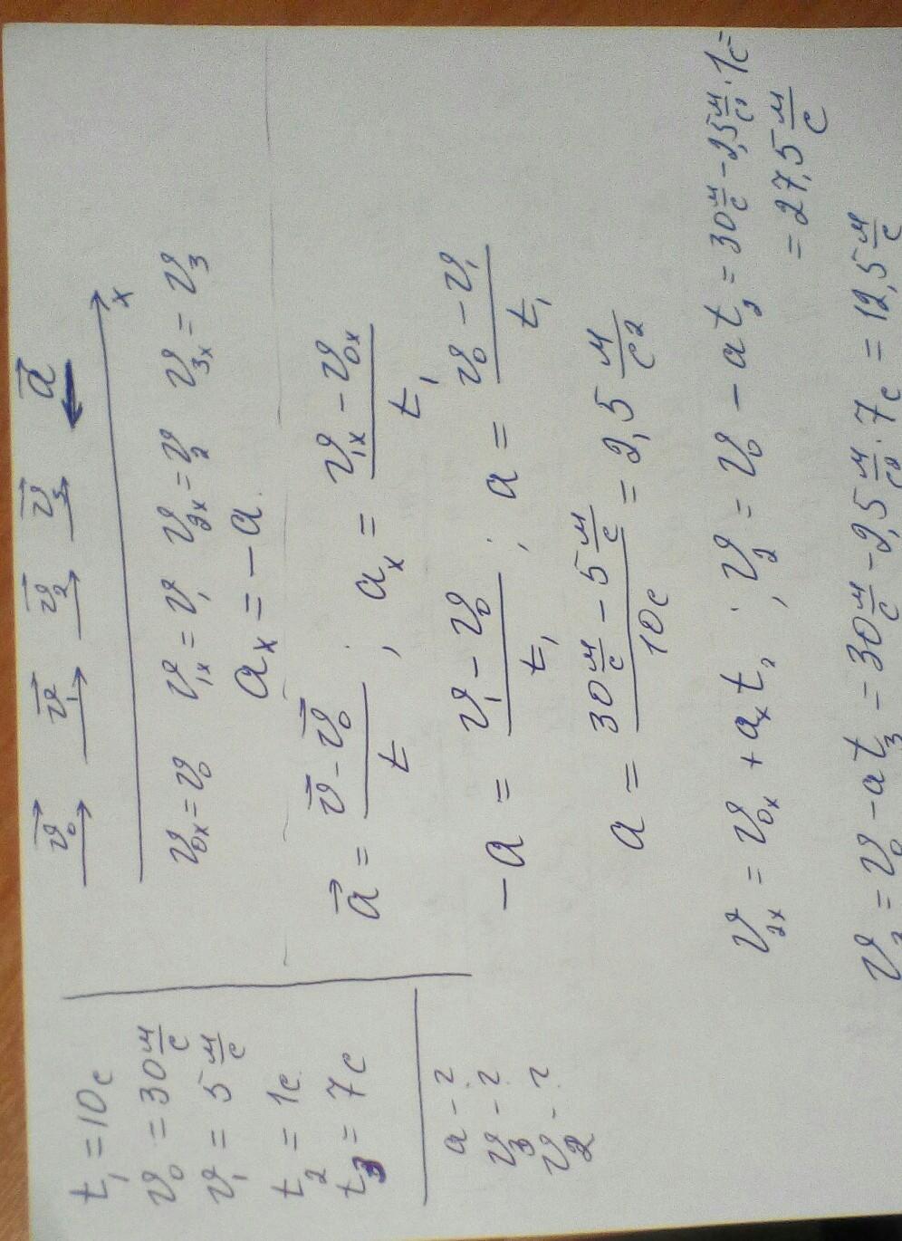Машина за 10 с замедляет движение с 30 м/с до 5 м/с. Рассчитайте для машины:
