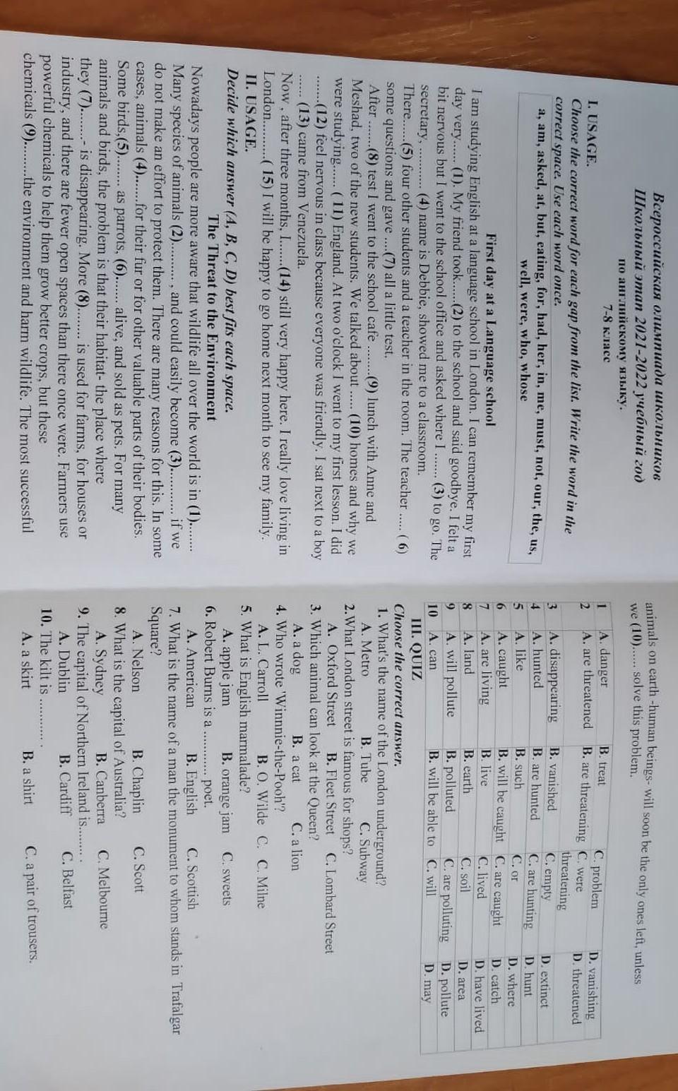 помогите пожалуйста решить ВОШ по английскому языку 2021-2022 год 7-8 класс дам много баллов за ответы!!!♥️