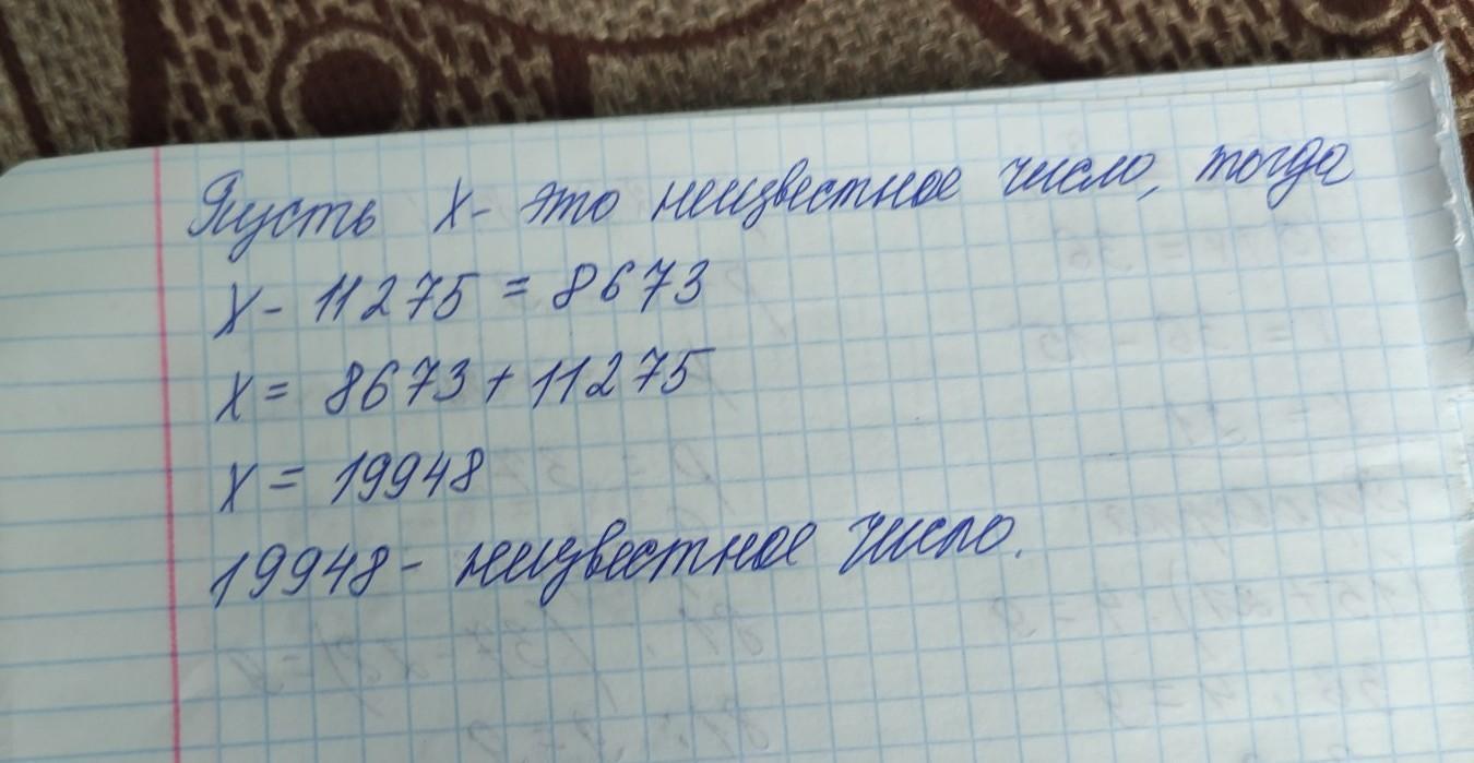 Если из неизвестного числа вычесть 11 275, то полу ЧИТСЯ 8 673. Найди неизвестное число. помогите пожалуйстаᕙ(⇀‸↼‶)ᕗ