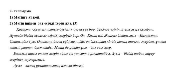 2)Зат есімдер:Қазақ,ауыл,бесік,сөз,жер,дүние,ел,Отан,Қазақстан,сүйіспеншілік,отбасы,қан,ұя,адам,тұғыр,халық,діңгек