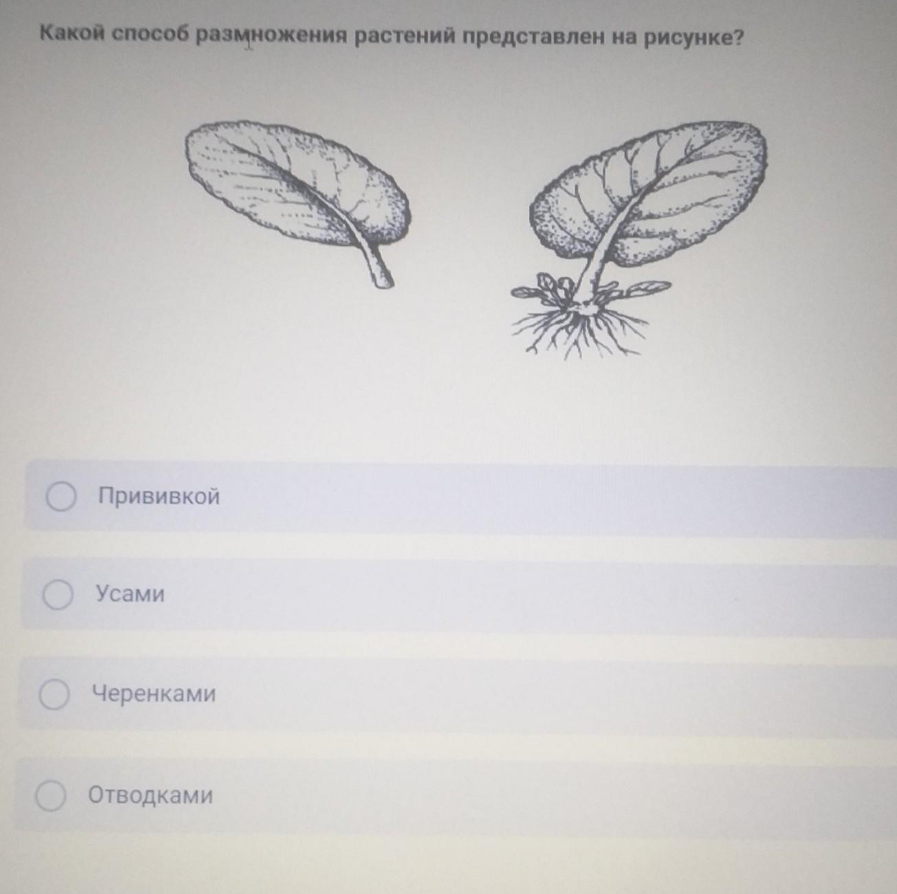 Какой способ размножения растений представлен на рисунке? Прививкой Усами Черенками Отводками помогите пожалуйста срочно решаю олимпиаду
