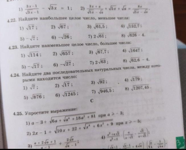 11>√7>10 так как это ближайшие числа то наименьшее целое число которое больше √114 это 11. В последующих примерах такой же принцип, поэтому я буду сокращать