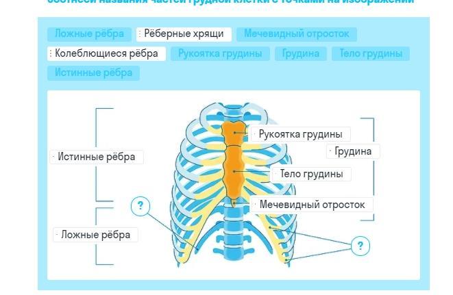 Реберные хрящи жёлтые на рисунке. Колеблющиеся ребра-это синие снизу