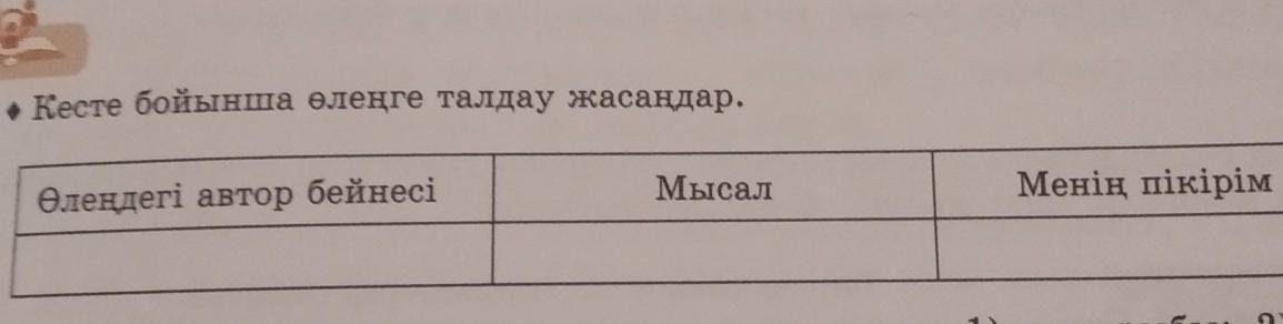 Кесте бойынша өлеңге талдау жасаңдар. Өлеңдегі автор бейнесі Мысал Менің пікірім