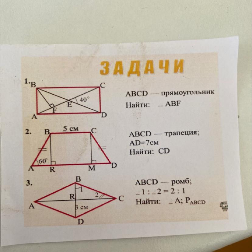 AR=MD=(AD-RM):2=(7-5):2=1 cм,а