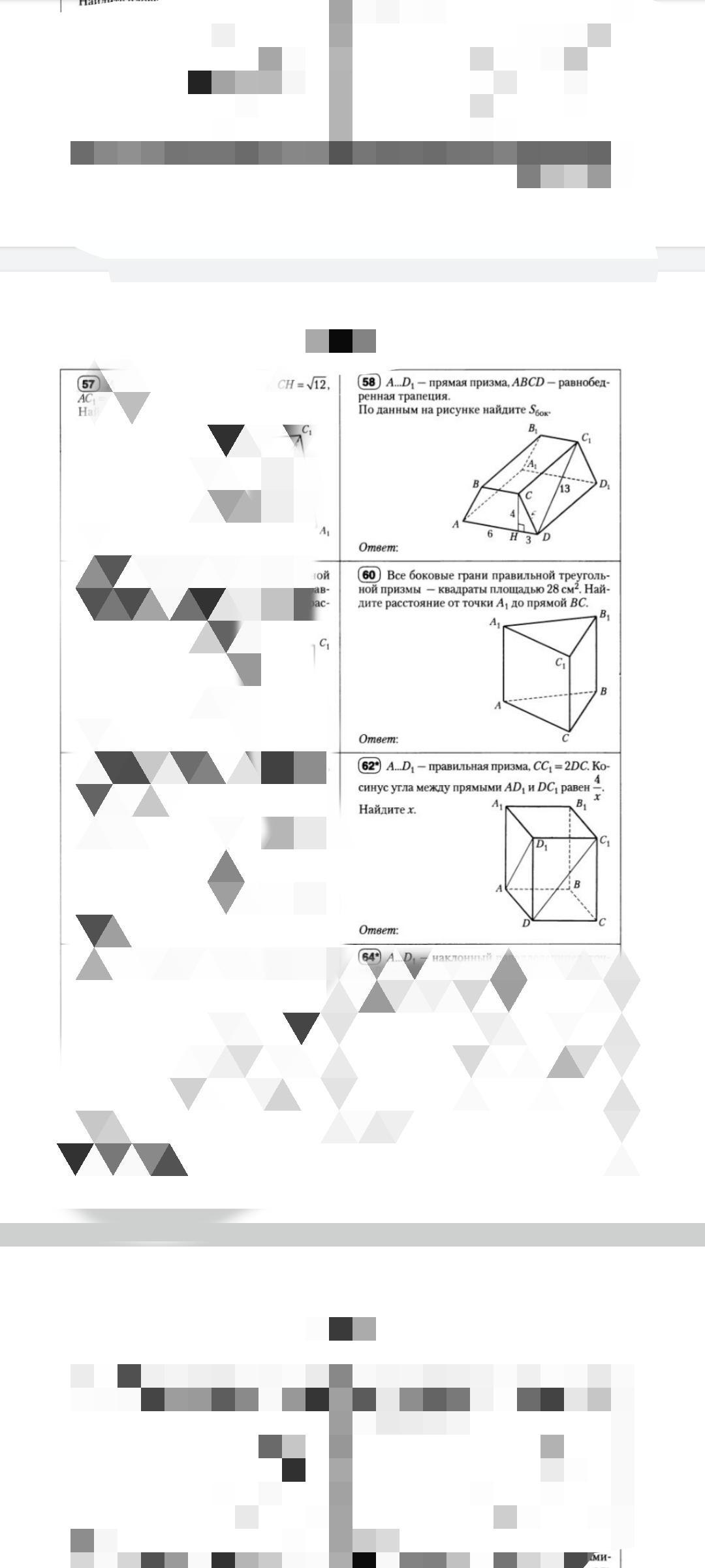 62) Поместим заданную призму в прЯмоугольную систему координат ребром АД по оси Ох, АВ по оси Оу.