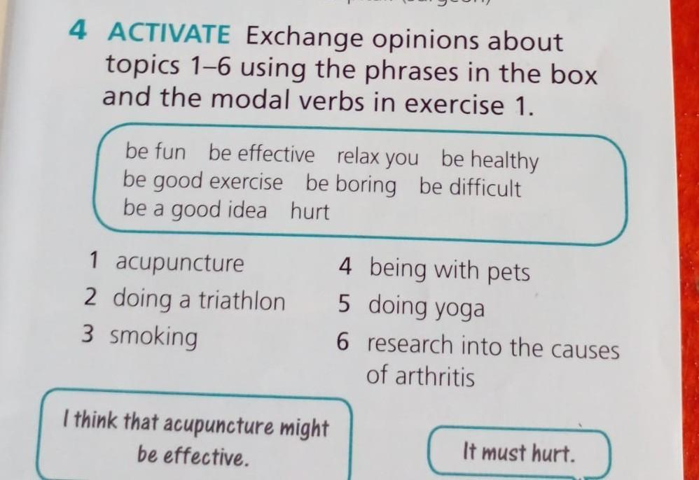 Ex:4 Exchange opinions about le topics 1-6 using the phrases in the box and the modal verbs in exercise.