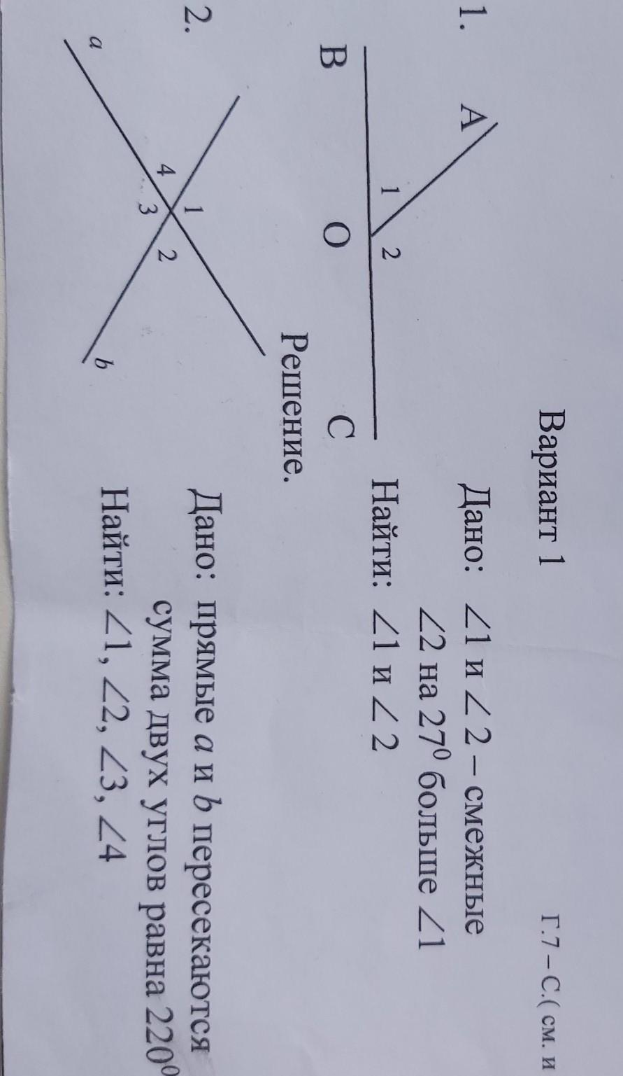 т.к. угол 1 и угол 2 смежные => угол 1+угол 2=180