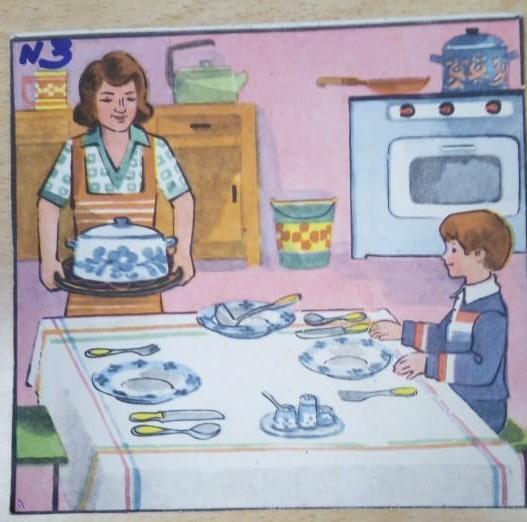 Ответ:Mom made a delicious soup, and the child is waiting for mom to give him soup to eat