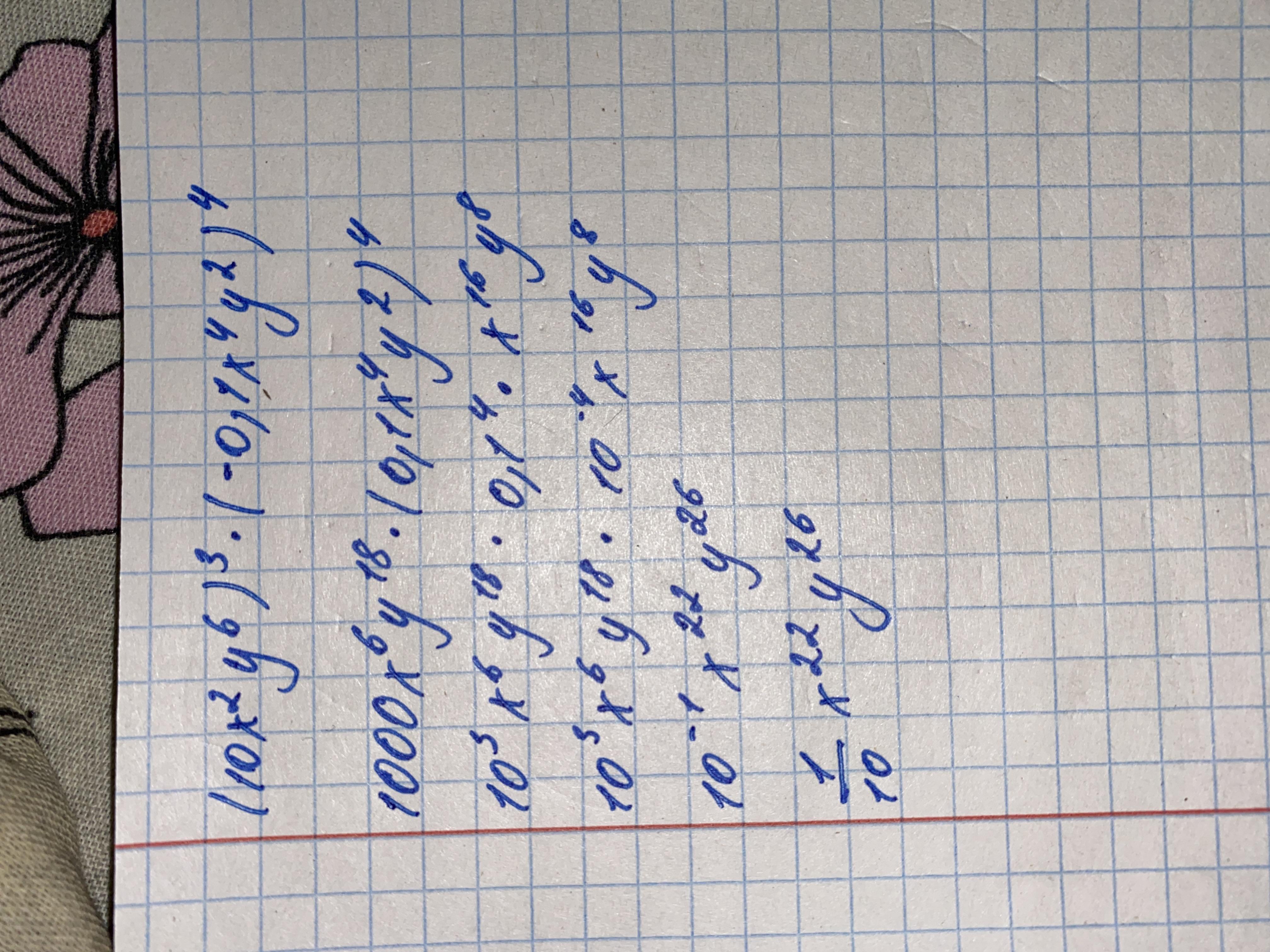Спростити вираз (10х²у⁶)³ •(-0,1х⁴у²)⁴